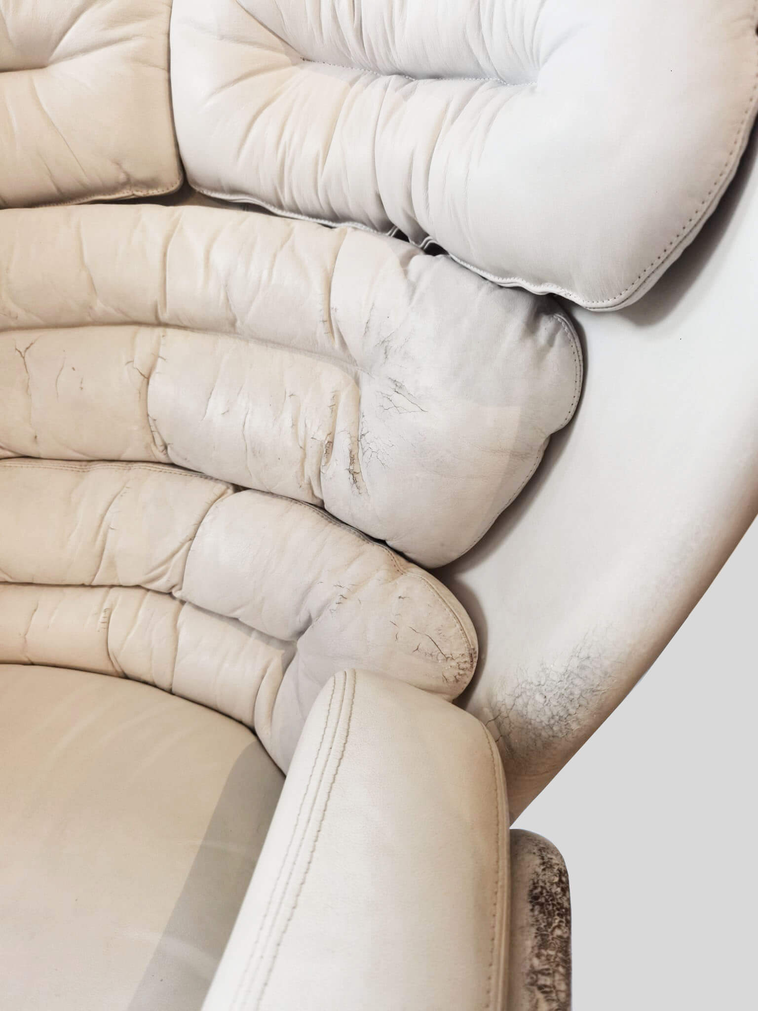 Designer – Joe Colombo Producer – Comfort Model – Elda Lounge Chair Design Period – Sixties Measurements – Width 100 cm x Depth 92 cm x Height 97 cm x Seat Height 39 cm Materials – Fiberglass, Leather Color – White